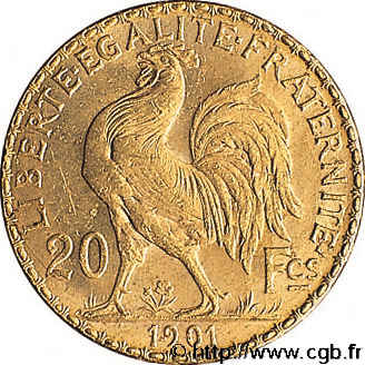 Le coq qui, depuis 1899, orne les monnaies or de 10 et 20 francs gravées