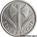 De nouvelles pièces de 50 centimes, 1 franc et 2 francs font leur apparition. La francisque de l'Etat français y est gravée dans l'aluminium et la nouvelle devise Travail, Famille, Patrie remplace la devise républicaine Liberté, Egalité, Fraternité.