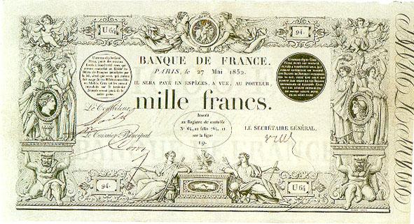 Jacques-Jean Barre (1793-1855) à qui l'on doit aussi la gravure de monnaies métalliques. Il fut à la fois le dessinateur et le graveur des billets de 500 francs et de 1000 francs du type 1842.